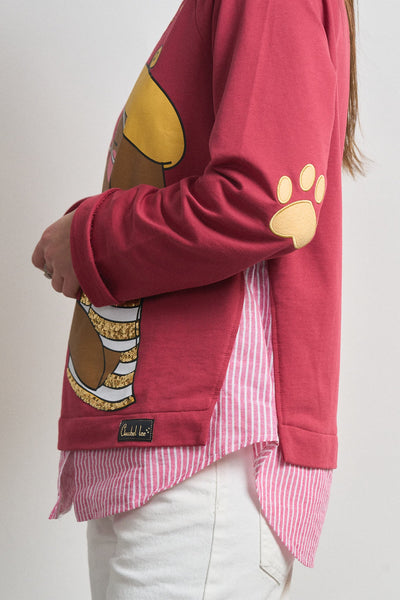 -Bajo de camisa popelín interior adherida en el cuerpo de la sudadera.