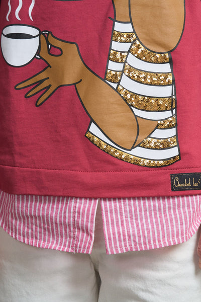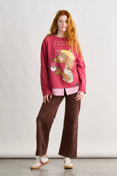 -Maxi print delantero con aplique de lentejuelas y frase bordada.