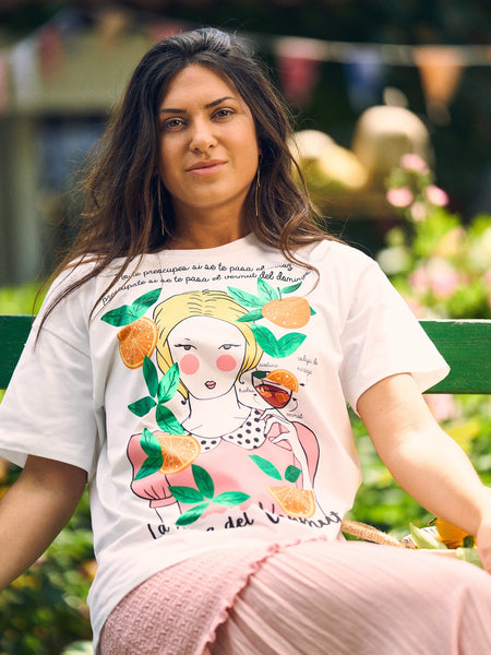 -Camiseta de corte oversize, manga corta y cuello redondo.