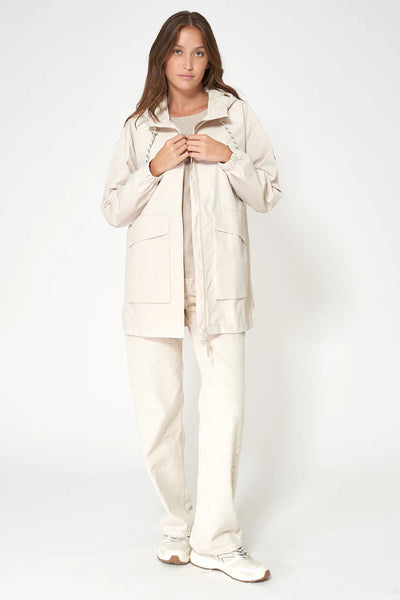 Esta chaqueta 100% impermeable apuesta por un diseño limpio y contemporáneo en el que los bolsillos delanteros cobran protagonismo, aportando carácter y funcionalidad a la prenda. Su silueta cómoda y equilibrada facilita el movimiento y se adapta con naturalidad a looks informales del día a día.