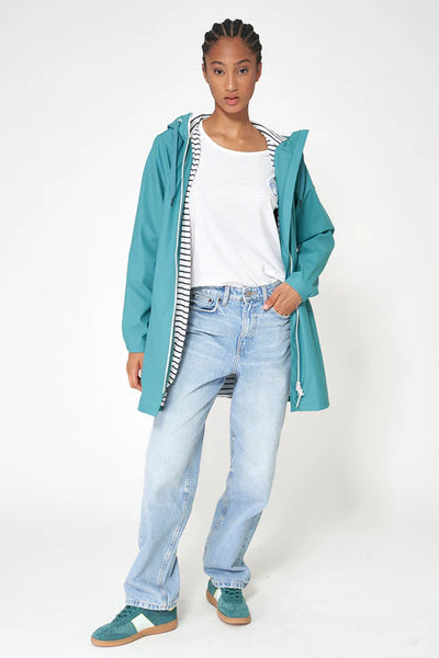 Este chubasquero está diseñado para protegerte de la lluvia sin renunciar al diseño y la comodidad. Es 100% impermeable gracias al tejido exterior de poliuretano y las costuras selladas, que ofrecen una protección total. Confeccionado con un tejido de poliuretano ligero y un forro interior de algodón a rayas que le aporta desenfado y un toque marinero al más puro estilo Batela, además de hacerlo más confortable a la hora de vestirlo por debajo con capas interiores finas en los días más templados.